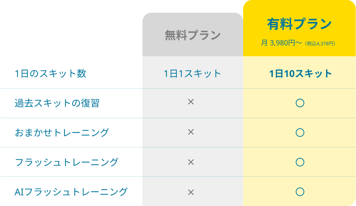 また、テーマ(⽇常・旅⾏・ビジネス)や難易度を自由に選べるので、目的やレベルに合わせたトレーニングが可能です。